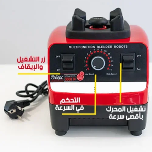 قوة عالية - 15 مستوى للسرعة: تمنحك خيارات تحكم دقيقة في سرعة الطحن والخلط حسب احتياجاتك.