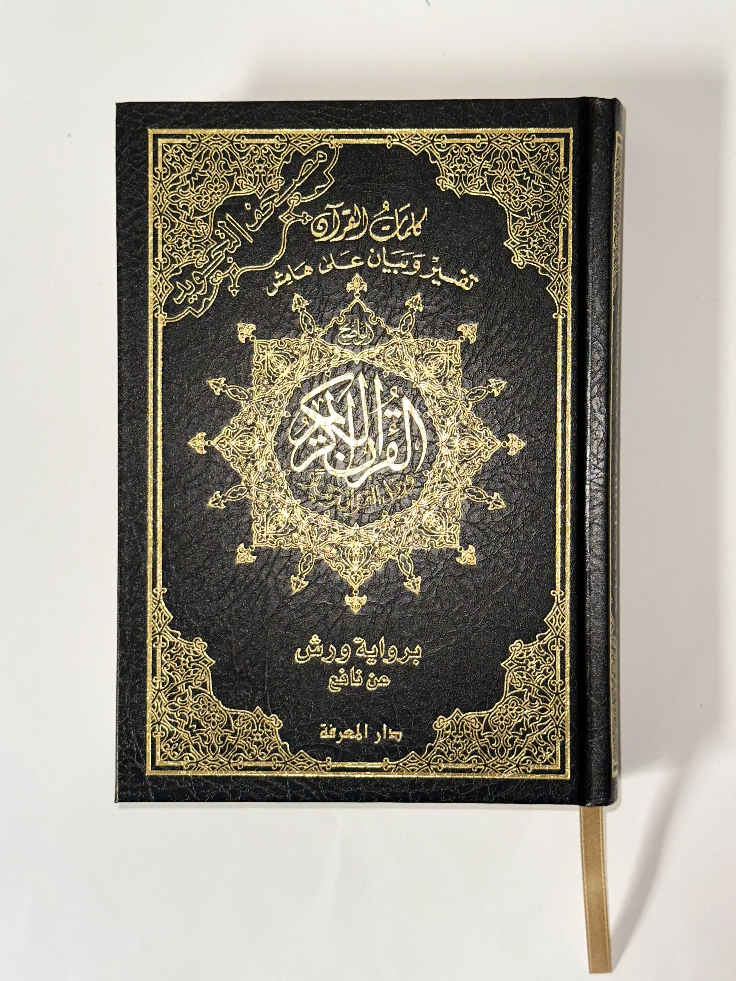 • مصحف التجويد الملون برواية ورش مع تفسير وبيان على الهامش +حامل المصحف